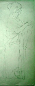 This is one of several drawings of Maja from that modeling session. It’s about 4×12 inches and rather lightly penciled on white paper so it doesn’t reproduce all that well.