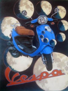 For a brand new scooter, the Vespa has had a few paint jobs. Here’s the final painting. I’m pleased.